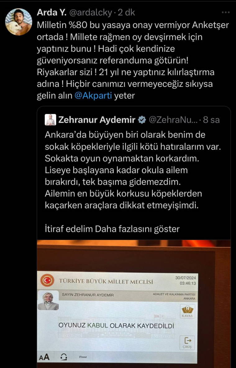 Yurttaşlar, "Bu katliam yasasına onay verenleri tarih asla affetmeyecektir!" diyerek tepkilerini dile getirdi.