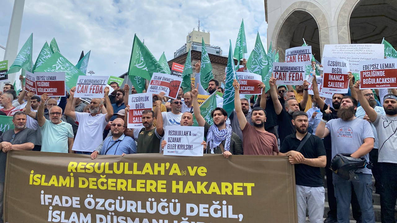 Ancak bu yasak, hilafet ve tevhid bayrakları taşıyan grubun Taksim Camii önünde toplanmasını engellemedi. Grup, Leman dergisini açıkca hedef alan açıklamalar yaptı, “Alçak Leman, Charlie Hebdo’yu unutma” sloganları attı. Basın açıklaması sırasında grubun çevresinde güvenlik güçlerinin bulunmasına karşın herhangi bir müdahalede bulunulmadı.