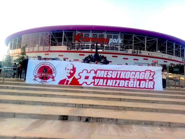 Öte yandan Antalyaspor- Hatayspor maçı öncesi 07 gençlik Taraftarı Antalya'nın sokaklarını, üst geçitleri, maçın oynanacağı Corendan Airlines Park Antalya Stadyumu etrafını "#Mesut Kocagöz Yalnız Değildir" pankartları astı.