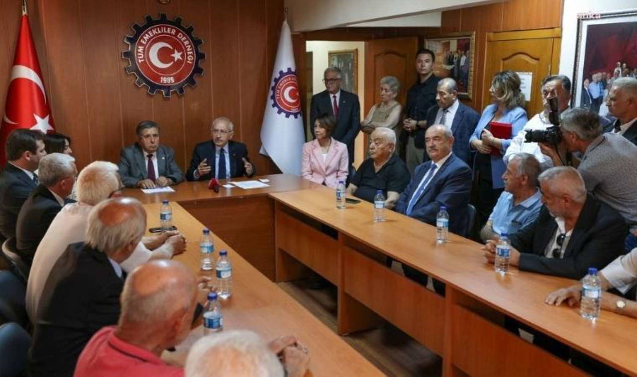 CHP Genel Başkanı Kemal Kılıçdaroğlu, bugün Tüm İşçi Emeklileri Dul ve Yetimleri Derneği'ni (TÜMEMEKDER) ziyaret etti. Kılıçdaroğlu, "Bu paraya şimdi 20 simit alınıyor, 5 yıl önce ise çok şey alıyordu" diye konuştu.