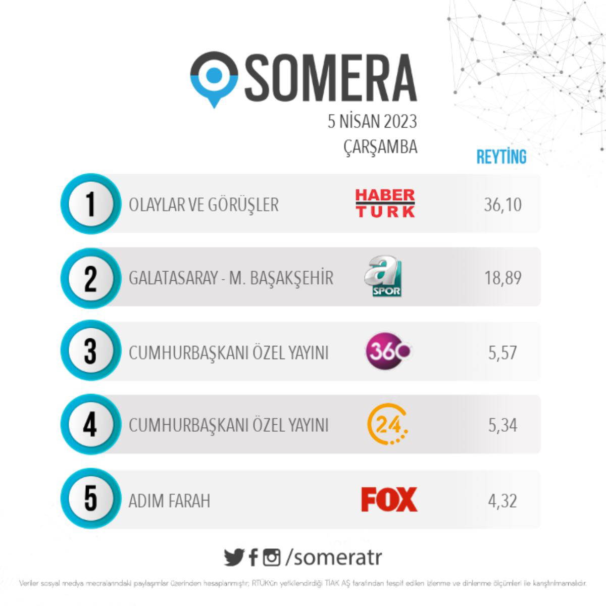 5 Nisan Çarşamba #SomeraReyting sıralaması