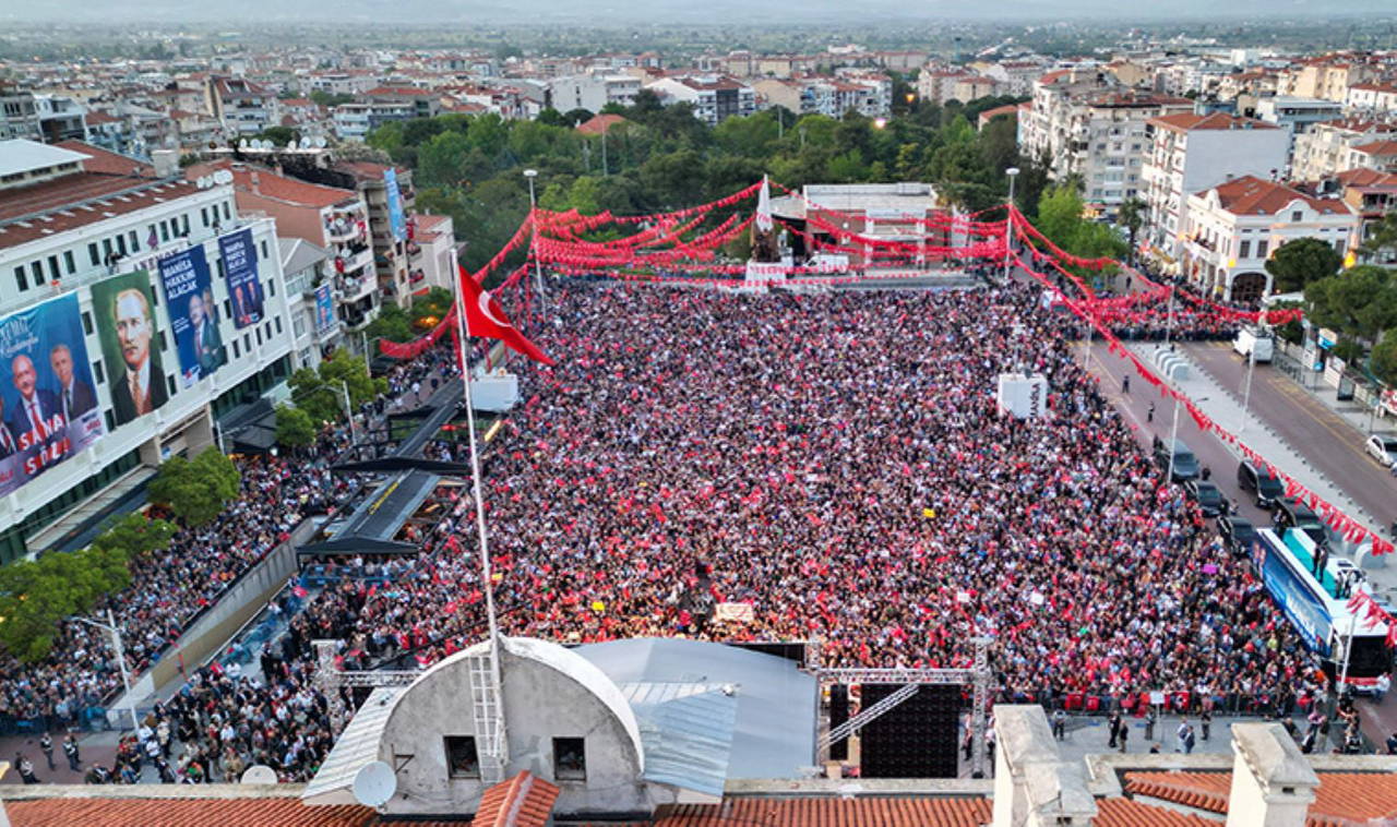“Beraber, birlikte yeni bir tarih yazacağız. İnanın. Bu ülkenin huzuru için, barışı için, hiçbir çocuğun yatağa aç girmediği Türkiye için, herkesin huzuru içinde yaşadığı bir Türkiye için birlikte tarih yazacağız. Bunun için 14’ünde hep birlikte sandığa gideceğiz ve oyumuzu kullanacağız. Özellikle gençler… Sizden söz istiyorum. Ayrışmadan, beraber, birlikte, oyun havası içinde huzur içinde oyumuzu kullanacağız. Bölünmeyeceğiz, ayrışmayacağız, birlikte demokrasiyi yeniden inşa etmek için sandığa gideceğiz ve dünya siyaset tarihine çok ama çok önemli bir not bırakmış olacağız.