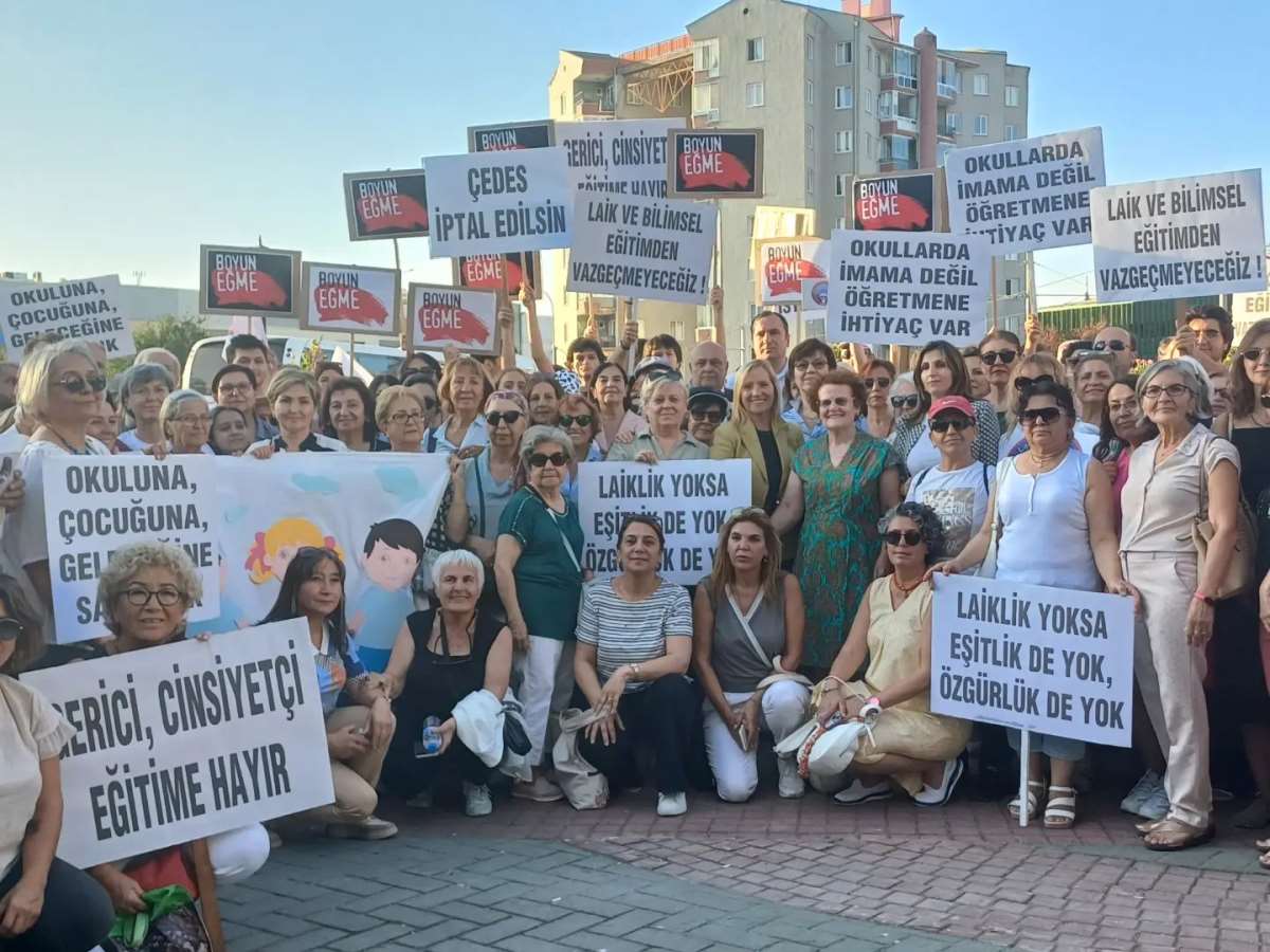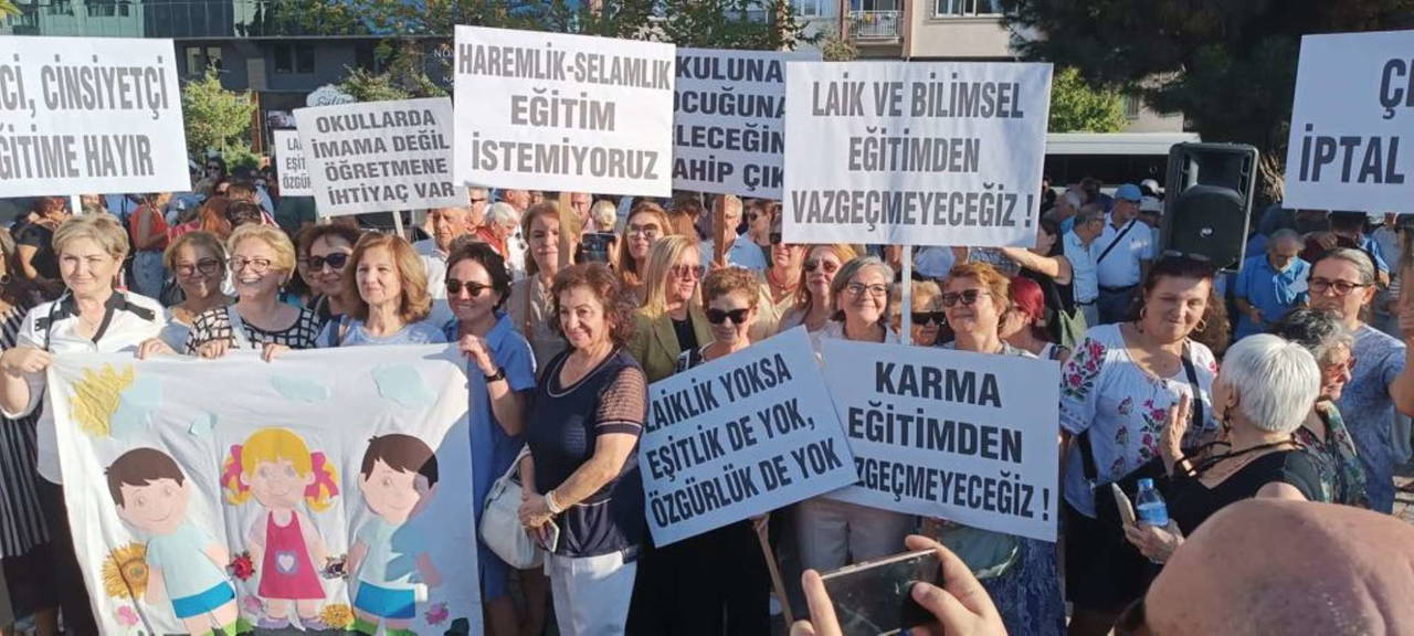 “Eğitim emekçilerine sesleniyoruz: Sevgili meslektaşlarımız; öğrencilerimiz bizlere Başöğretmen’in emanetidir. Onları, laiklik karşıtı uygulamalara terk etmeyiniz! Kimsenin sizin dersinizi bölme, gasp etme, sizin dersinizden öğrenci çıkarma hakkı yoktur. Bu tür girişimleri her şeyden önce öğrencileriniz, sonra mesleki itibarınız için reddediniz!