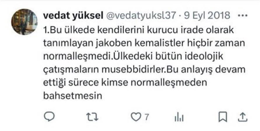 Şehremini Anadolu Lisesi’nde müdür olan Vedat Yüksel’in siyasi geçmişi ve sosyal medya paylaşımları öğrenciler arasında tepkiye neden oldu. Yüksel’in HÜDA PAR ve İnsani Yardım Vakfı’yla (İHH) yakın ilişki içinde olduğu, bir paylaşımında ise “Kendini kurucu irade olarak tanımlayan jakoben Kemalistler hiçbir zaman normalleşmedi. Bu anlayış devam ettiği sürece kimse normalleşmeden bahsetmesin” ifadelerini kullandığı görüldü. Yüksel'in öğrencileri tek tek tehdit ettiği öne sürüldü.