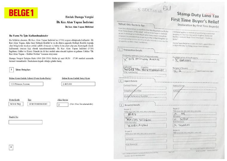 - Çağlayan Yavaş, evini 465.000 Sterlin'e almıştır. (BELGE 1)