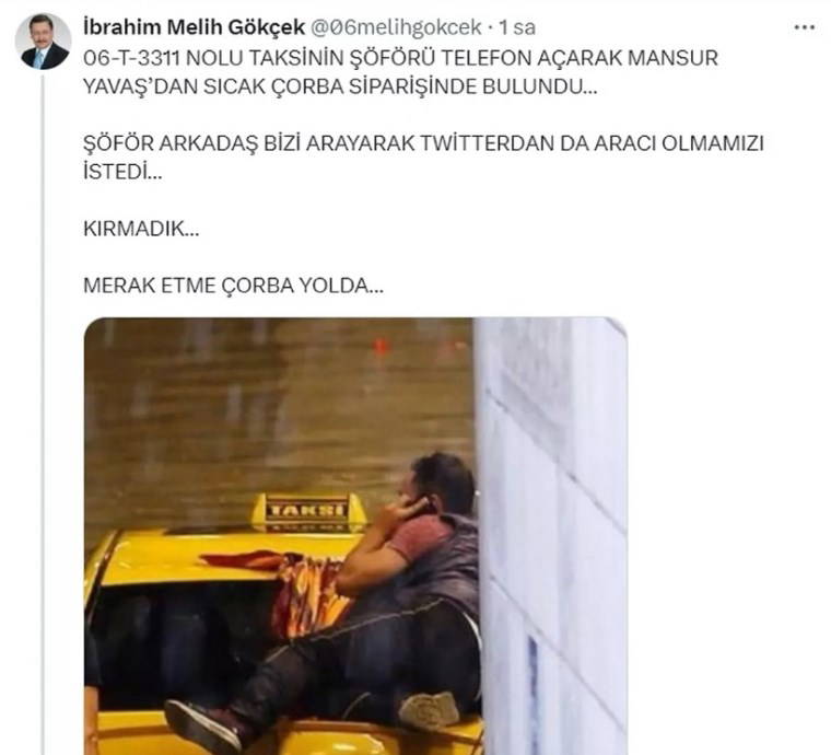 telefon açarak Mansur Yavaş’tan sıcak çorba siparişinde bulundu… Şoför arkadaş