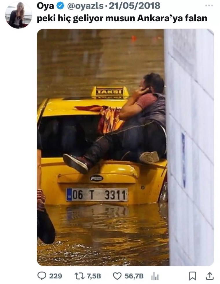 Gökçek bir sel fotoğrafını "06-T-3311 nolu taksinin şoförü