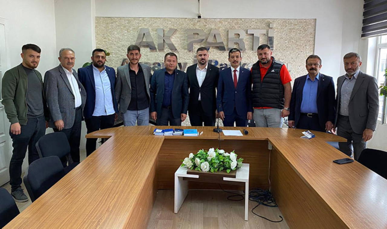 AK Parti Aksaray İl Başkanlığını ziyaret eden Künt ve beraberindekilere rozet takıldı.