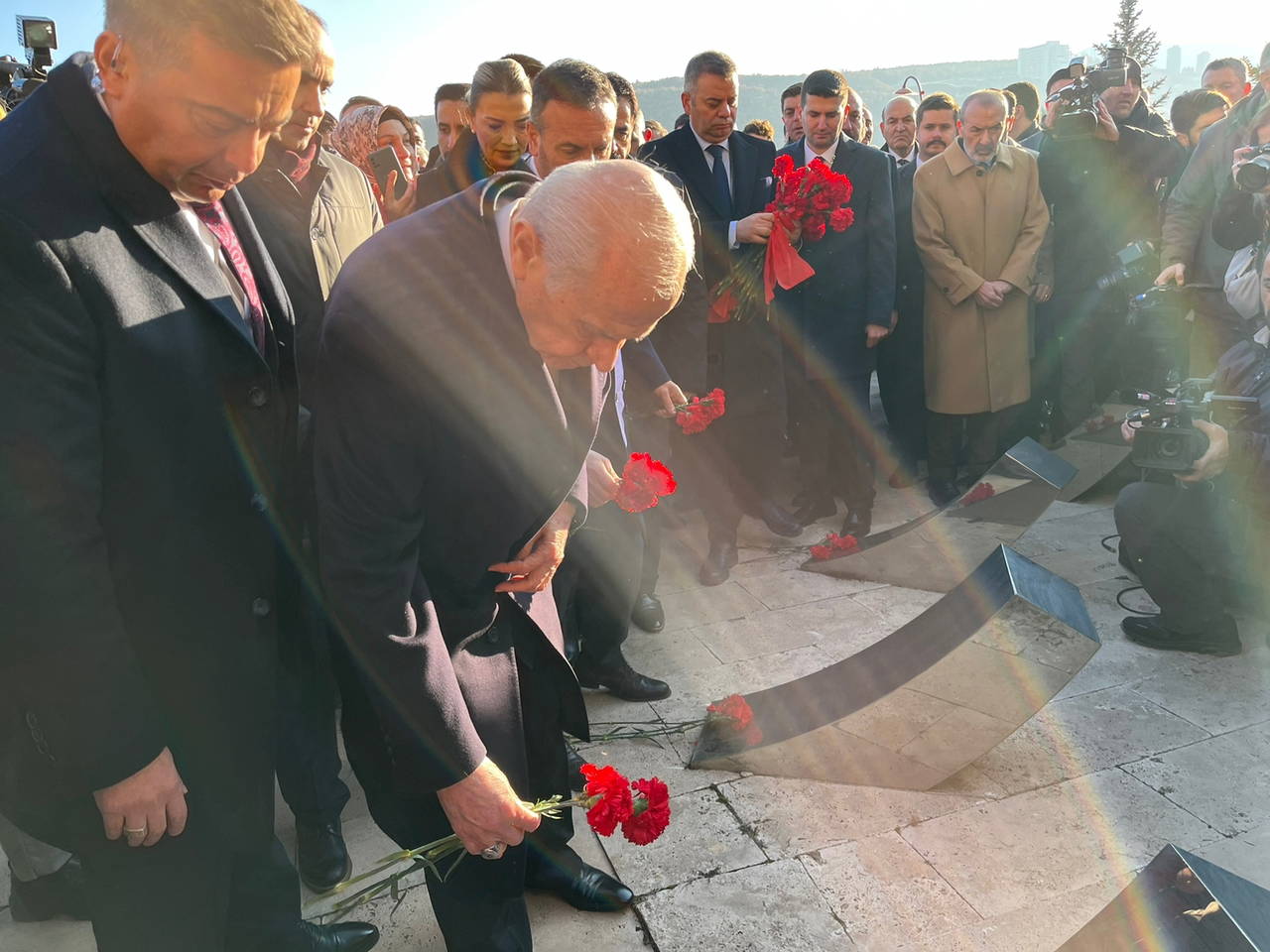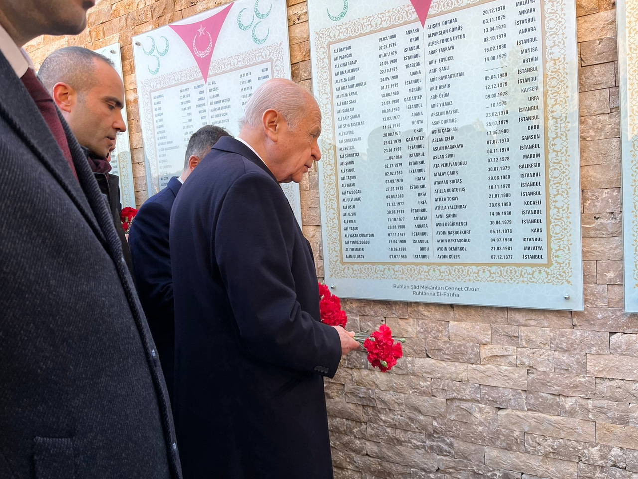 Bahçeli, daha sonra şehitlerin isimlerinin yazılı olduğu anıta karanfil bıraktı.