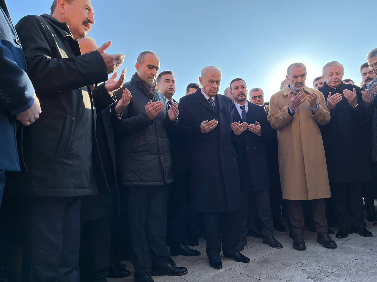 MHP lideri Bahçeli, toplantı öncesi MYK, MDK üyeleri ve milletvekilleri ile Kızılcahamam'daki Ülkücü Şehitler Anıtı'nı ziyaret etti. Anıtta Kuran okundu, dua edildi.