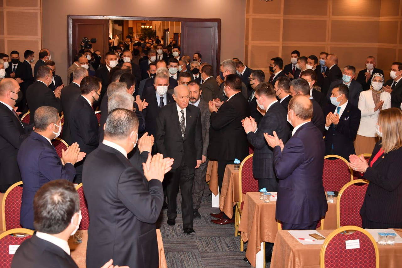 MHP'nin, Merkez Yönetim Kurulu (MYK), Merkez Disiplin Kurulu (MDK) üyeleri ve milletvekillerinin katılımıyla 2023 seçimlerine yönelik geçen yıldan bu yana sürdürülen hazırlıklar kapsamında Kızılcahamam Patalya Otel'de düzenlediği toplantı başladı.