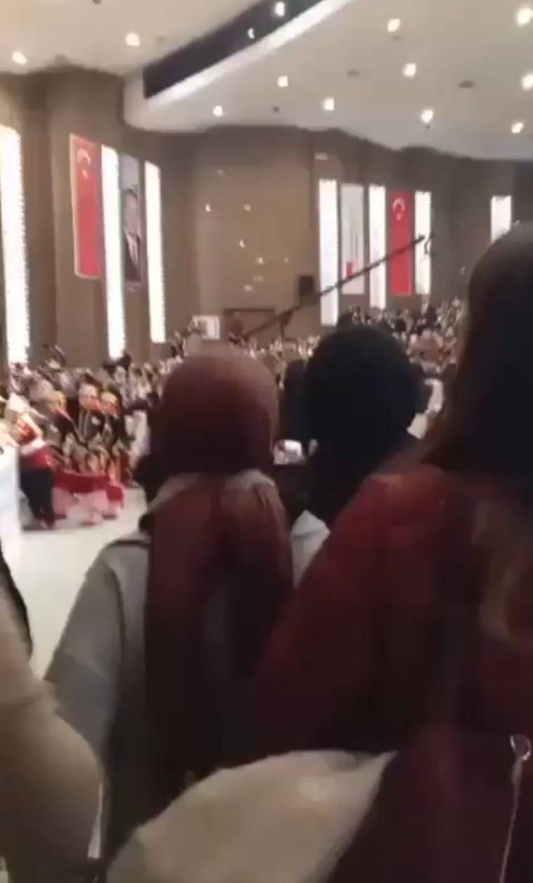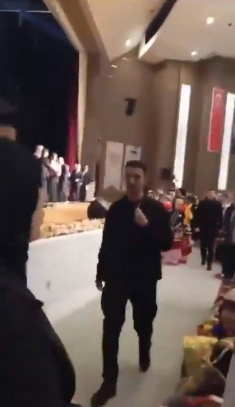 Sözcü'de yer alan habere göre; Tekin'in salonda bulunan korumaları öğretmenlere müdahale etti. O anlar kameraya da yansıdı.