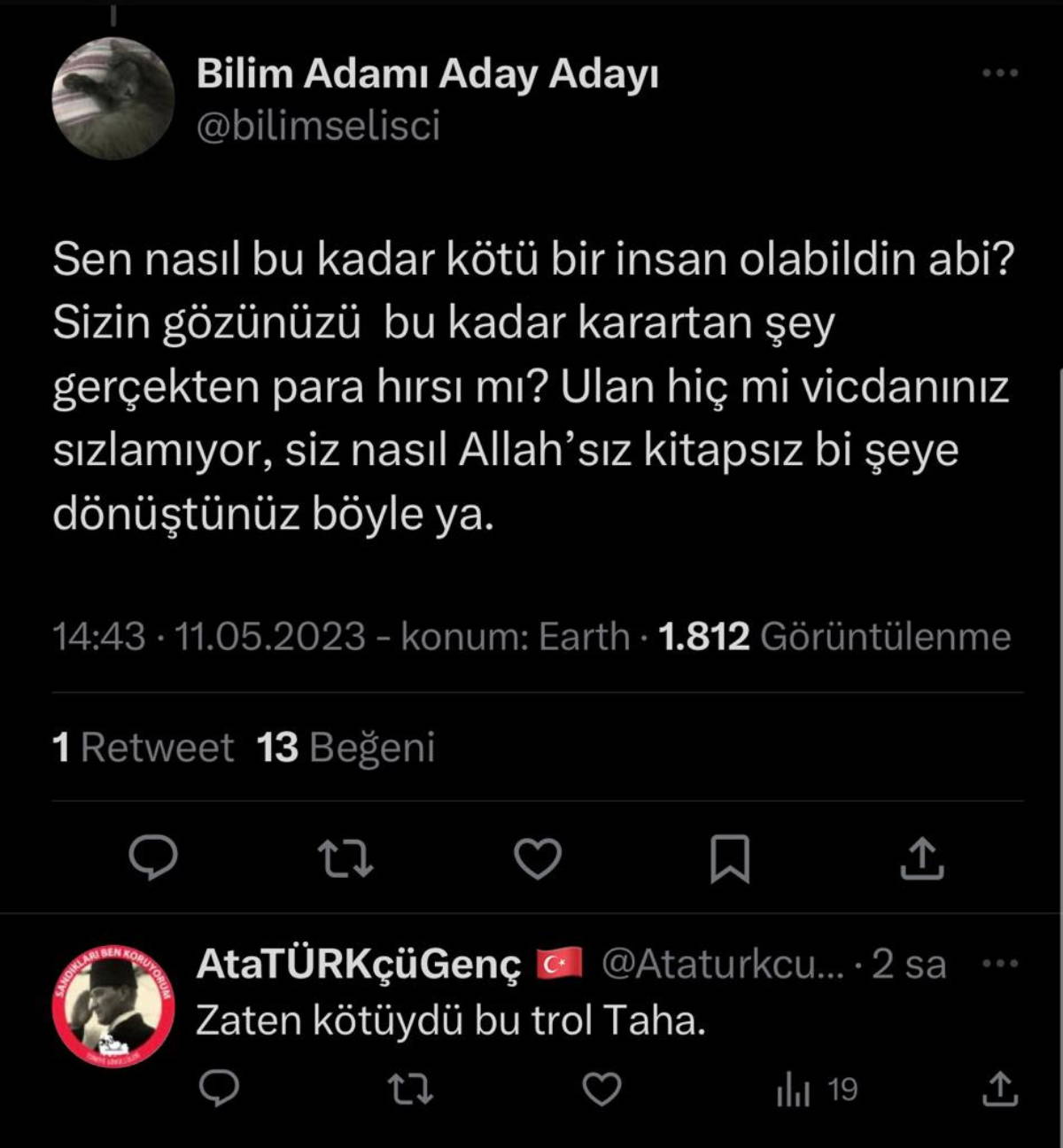 Muharram İnce'nin adaylıktan çekildiği ilk andan itibaren bütün güçlerini “seçim sonuçlarını etkileyecek dezenformasyonlar üretmeye” harcayan trollerin aynı dil ve amaçtaki paylaşımlarına tepki yağdı.