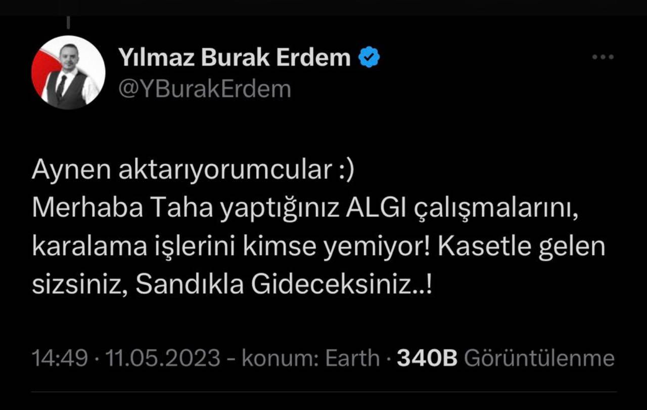 İktidara yakınlığıyla bilinen ve sosyal medyadaki algı operasyonları ile tanınan Yeni Şafak muhabiri Taha Hüseyin Karagöz, sosyal medya hesabından şu ifadeleri paylaştı: