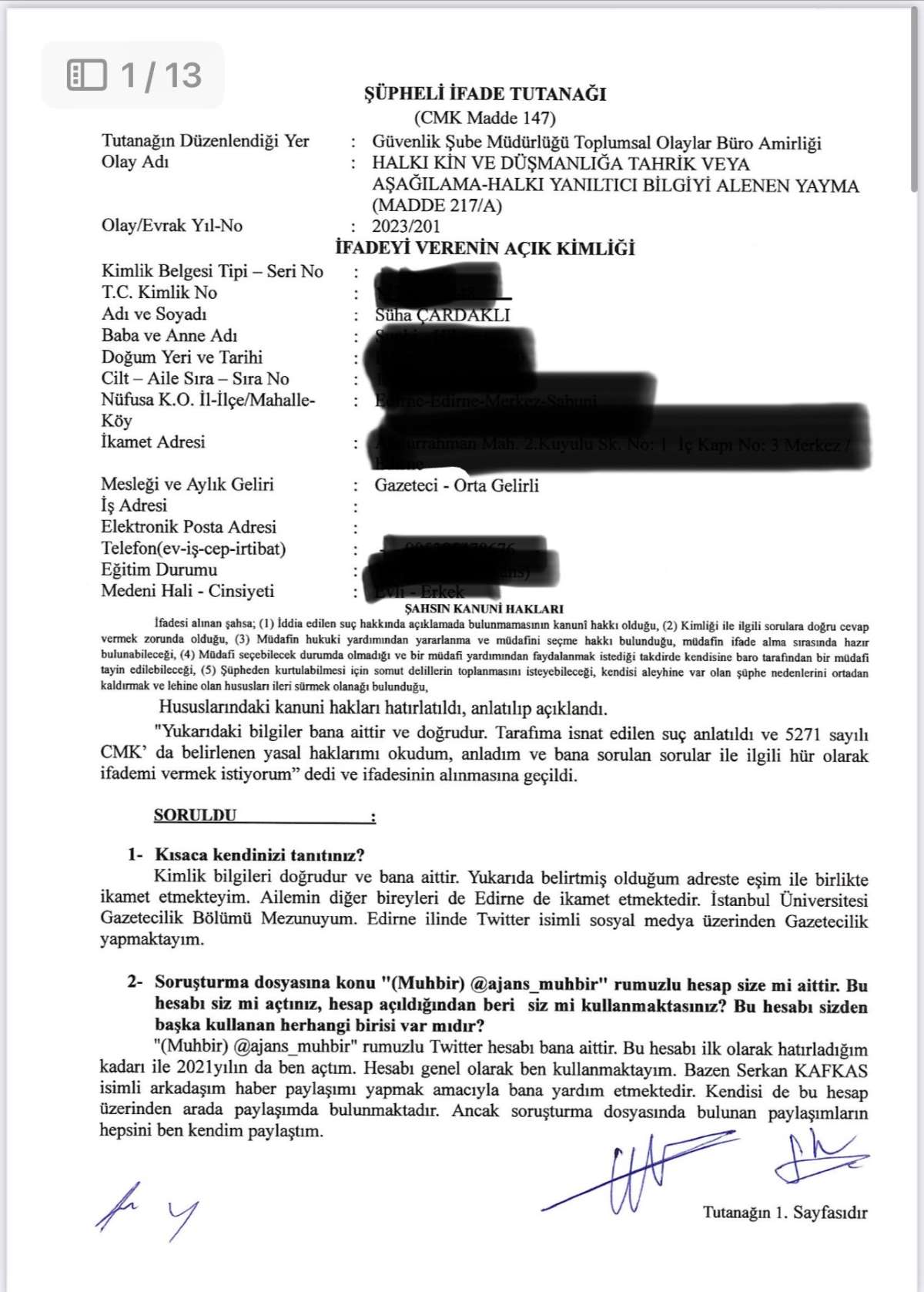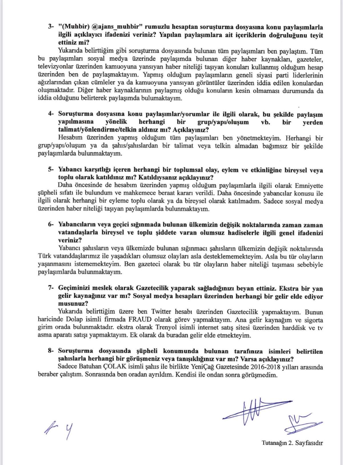 1-Gözaltına alınan ve tutuklanarak Sincan cezaevine gönderilen Muhbir hesabının yöneticisi (Ben de yeni öğrendim) Süha Çardaklı’nın ifadesine ulaştım.