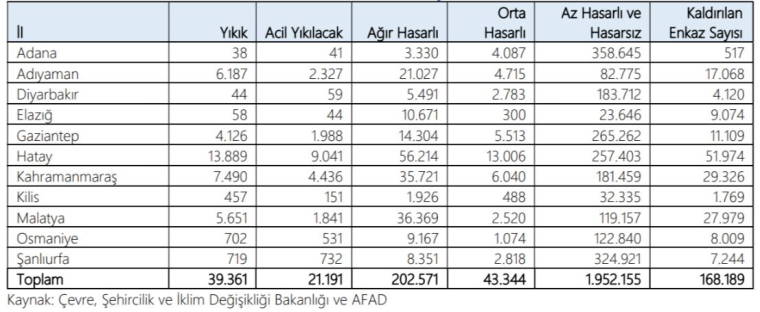 AKP iktidarının 319 bini ilk yıl olmak üzere toplam 650 bin konut teslim etme sözü verdiğine dikkat çeken Zeybek, “Bakan Kurum, 201 bin konutun tamamlandığını açıkladı. İnanılması güç ama vaat edilen konutların yalnızca yüzde 31’ini tamamlamış olmakla övünüyorlar. Konutlar teslim edilmedi, riskli yapıların dönüşümünün tamamlanması mümkün değil, peki depremden etkilenen ağır hasarlı yapıların yıkımları tamamlandı mı?” diyerek Çevre, Şehircilik ve İklim Değişikliği Bakanlığı ile AFAD’ın açıkladığı verilerden oluşan tabloyu paylaştı.