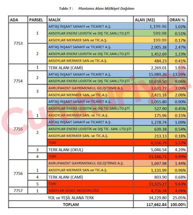 Bir detay da bu. Proje alanının bir bölümünde, gecekondulardan temizlenen arazileri şirket satın almıştı. Arazinin bir bölümü ise TOKİ’ye aitti.