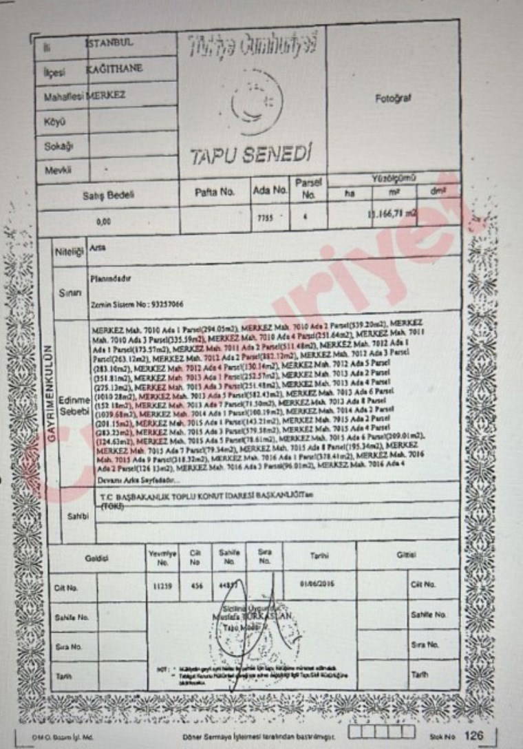 İşte TOKİ’nin elinde bulunan arazinin tapusu:
