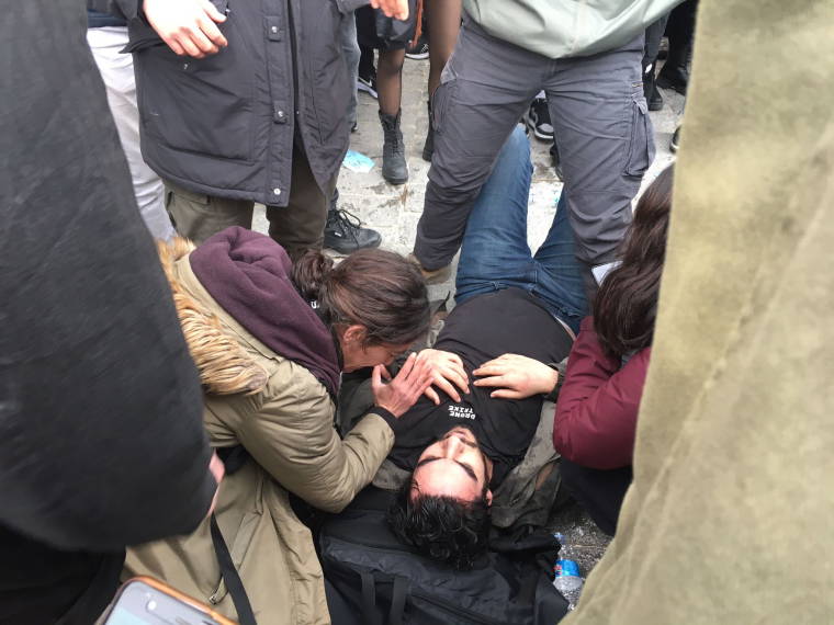 Beyazıt Ana Kapı önünde bir araya gelen öğrenciler polis müdahalesi ile karşılaştı. Polis barikatını aşıp okula girmek isteyen öğrenciler arasında arbede yaşandı. Arbede sırasında öğrencilerden biri baygınlık geçirdi.
