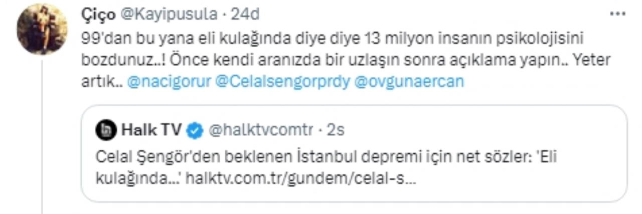 "99'dan bu yana eli kulağında diye diye 13 milyon insanın psikolojisini bozdunuz..! Önce kendi aranızda bir uzlaşın sonra açıklama yapın.. Yeter artık."