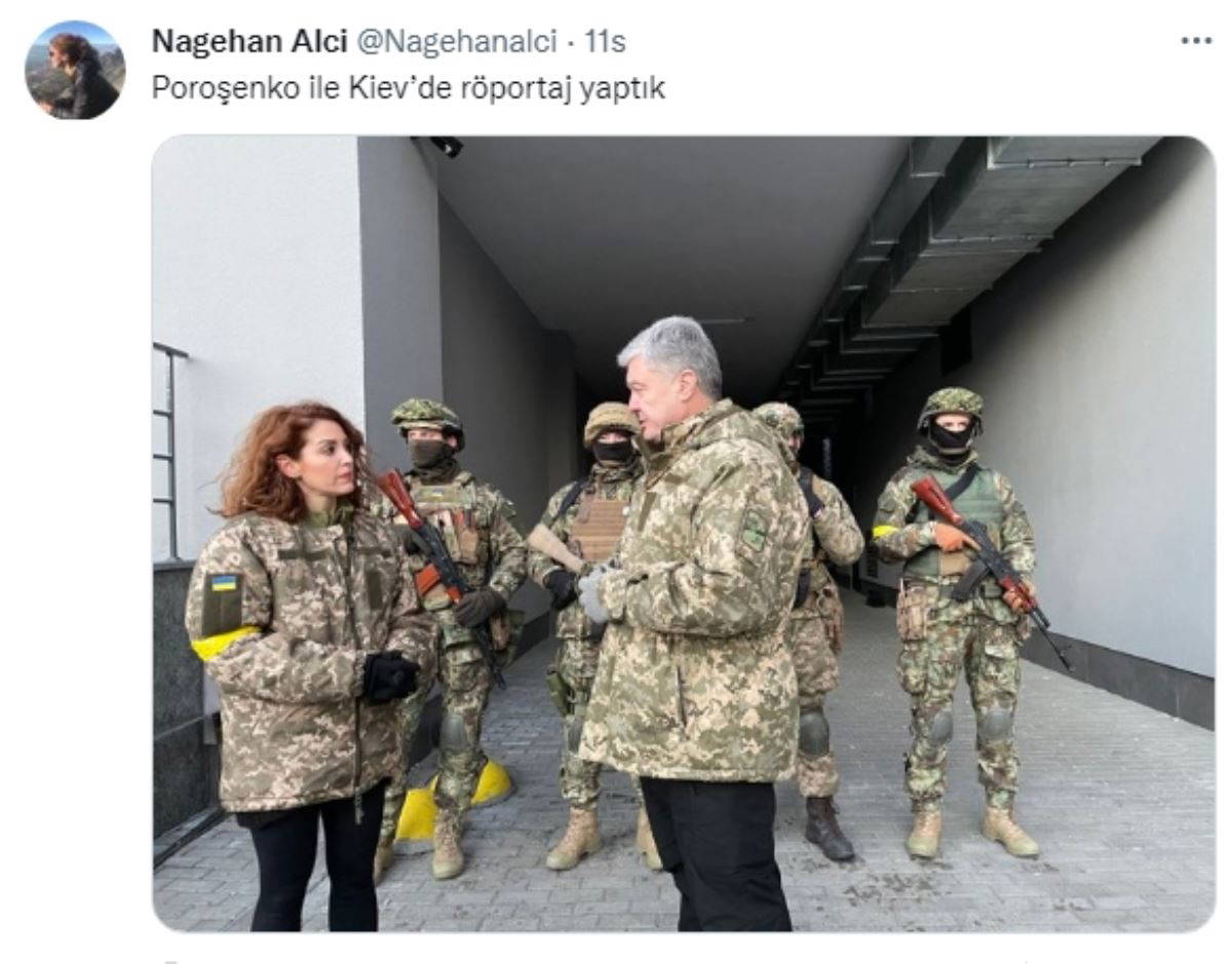 Habertürk yazarı Nagehan Alçı, Rusya'nın askeri harekat düzenlediği Ukrayna'da askeri üniforma giymiş halde fotoğraf çektirerek sosyal medya hesabından paylaştı.