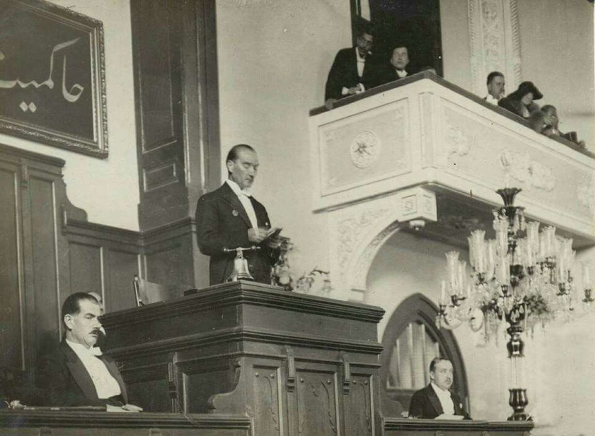 Ulu önder Mustafa Kemal Atatürk, tam 96 yıl önce bugün TBMM’de Nutuk’u okumaya başladı. Atatürk’ün “9 yıllık dönemin millete hesabının verilmesi” olarak değerlendirdiği metnin okunması, 15-20 Ekim tarihleri arasında 6 gün boyunca, her gün 6 saatten, toplam 36 saat 31 dakika sürdü. Ulu önderin 506 sayfalık taslak üzerinde çalıştığı Nutuk, yabancılar tarafından “Maraton Konuşma” olarak tanımlandı.