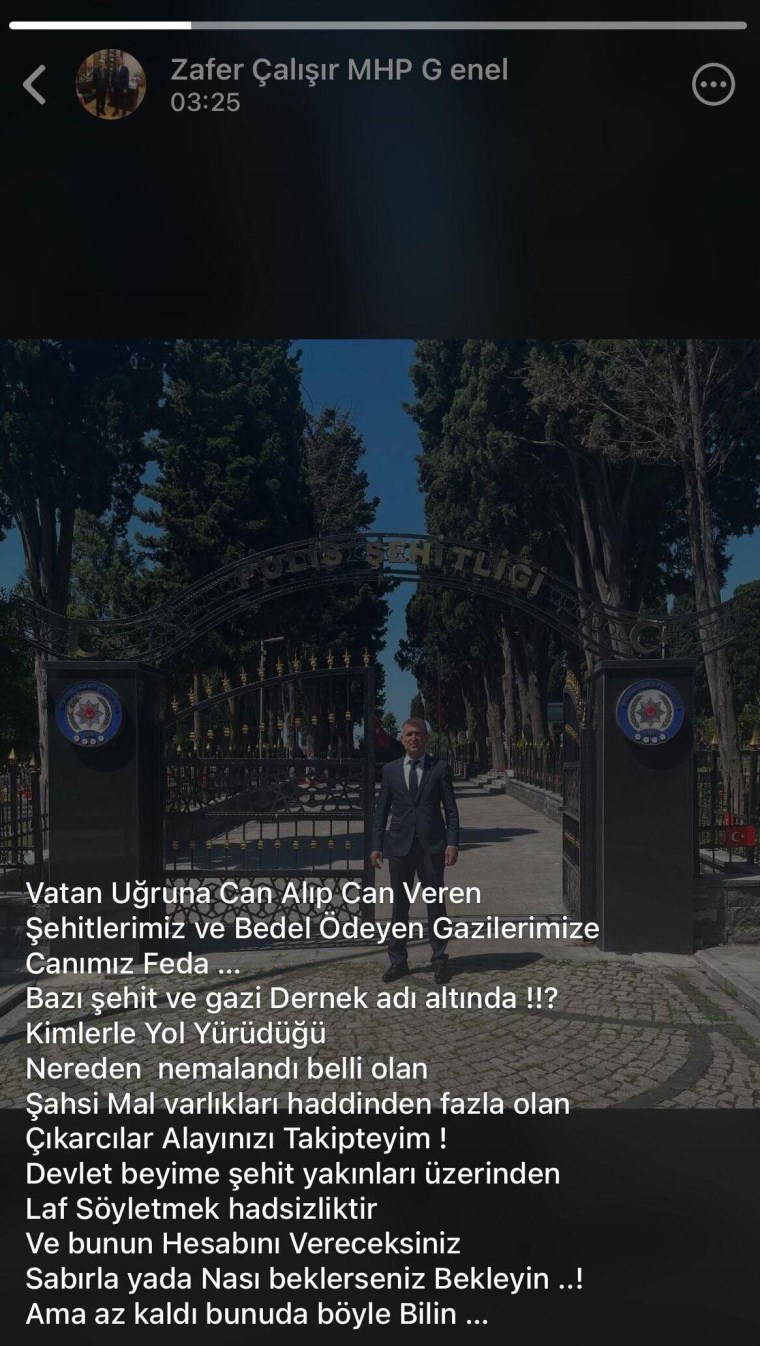 B Yüzü'nün aktardığına göre, MHP'den söz konusu açıklamalara tepki geldi. MHP İstanbul İl Başkan Yardımcısı Zafer Çalışır, Edirnekapı Şehitliği'nde bulunan Polis Şehitliğinden fotoğraf paylaşarak, şehit yakınları ve gazi derneklerini hedef aldı.