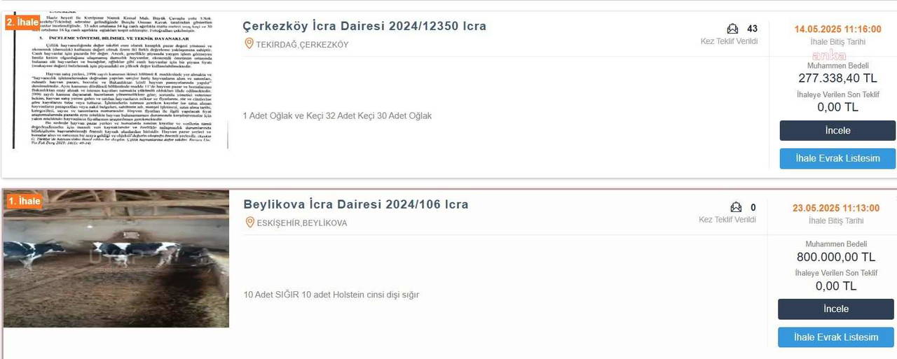 Gürer, borçları nedeniyle hayvanlarına icra gelen üreticilerle ilgili icra belgelerini paylaşarak, "Nisan ayında Tekirdağ Çerkezköy’de bir üreticinin borçları nedeniyle 33 adet Malta melezi anaç keçi ve 30 adet oğlak, toplam 277 bin 338 TL muhammen bedelle icra yoluyla satışa çıkarılmıştı. Şimdi de benzer bir durum Eskişehir Beylikova’da yaşanıyor. Burada 10 adet Holstein cinsi dişi sığır, 800 bin TL muhammen bedelle satışa sunuldu. Borçlarını ödeyemeyen üreticiler, ellerindeki hayvanları kaybediyor. Bu, yalnızca bireysel bir iflas değil, ülkemizin hayvancılık kapasitesinin doğrudan küçülmesidir" diye konuştu.