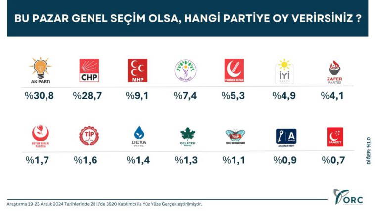Son olarak ORC Araştırma, 2024'ün son anketini kamuoyu ile paylaştı.