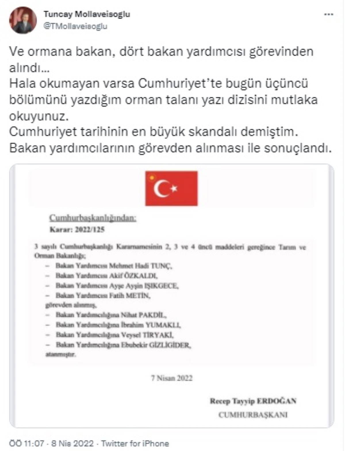 "Ve ormana bakan, dört bakan yardımcısı görevinden alındı…