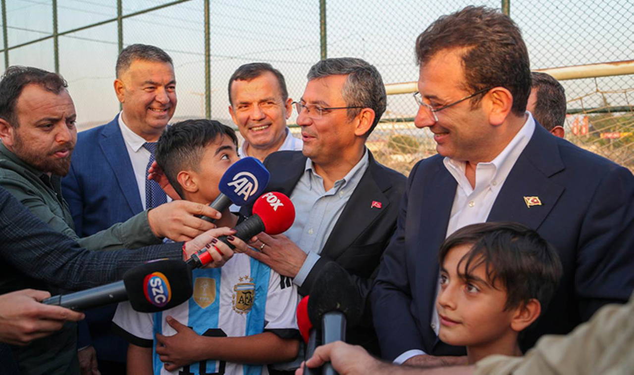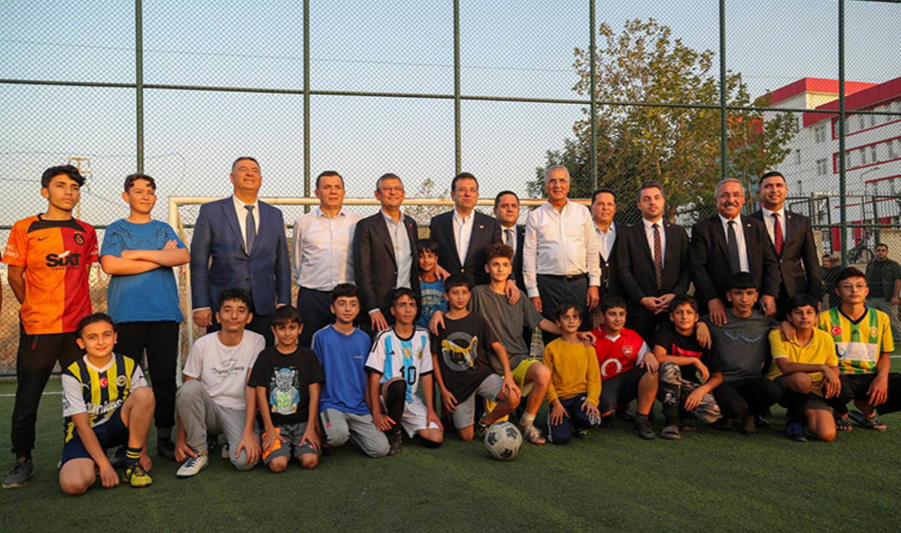 İmamoğlu, futbol oynayan çocuklara “Mahalle takımı mı yoksa bir futbol takımınız mı var” diye sordu. Çocuklar, “Mahalle takımı” diye cevap verdi. CHP Genel Başkanı Özgür Özel ve İBB Başkanı Ekrem İmamoğlu futbol oynayan çocuklarla fotoğraf çektirdi.