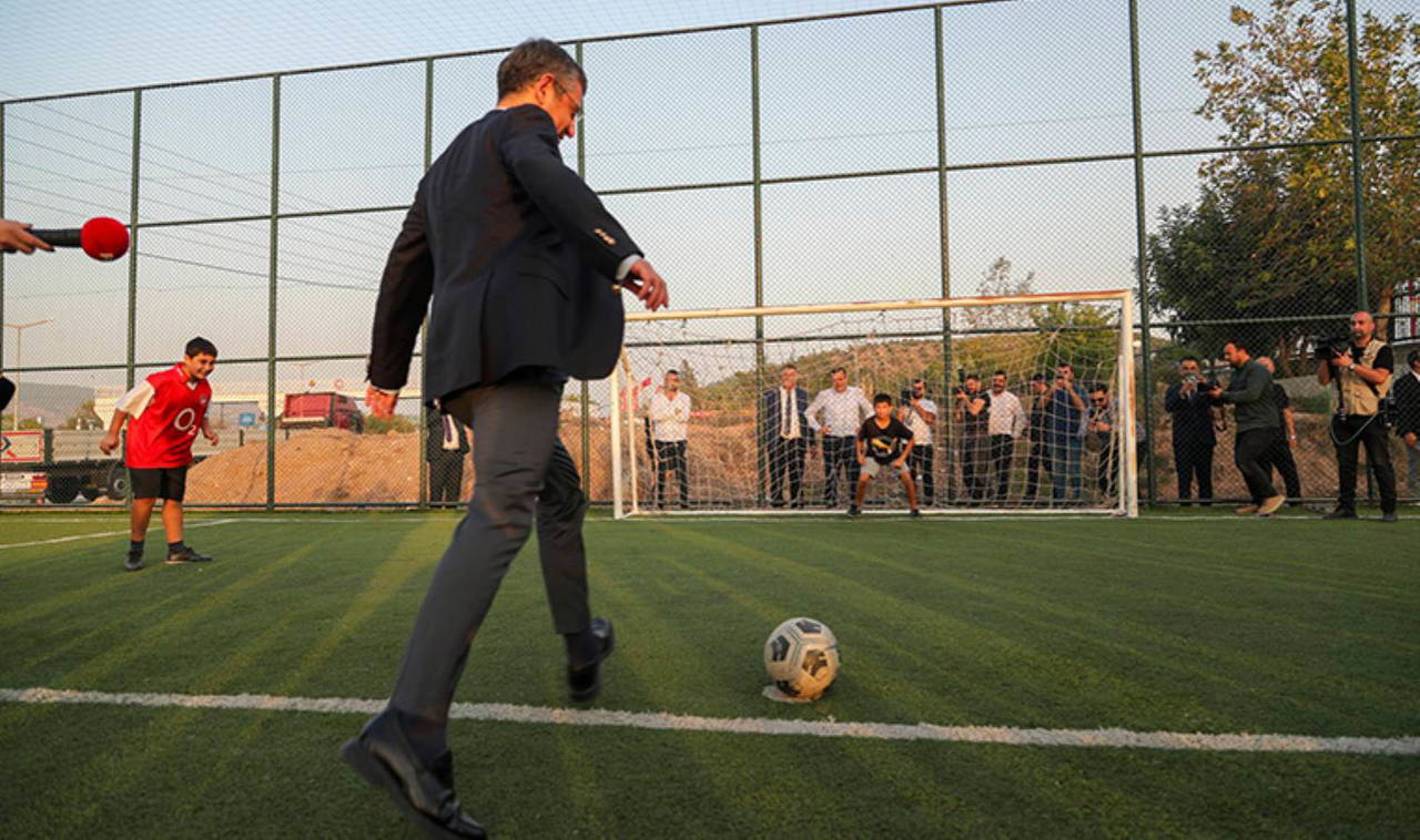 CHP Genel Başkanı Özgür Özel, İBB Başkanı Ekrem İmamoğlu ile birlikte bugün Osmaniye'de bir halı sahaya uğradı ve çocuklarla futbol oynadı. Özel ve İmamoğlu çocuklarla futbol oynarken sohbet etti.