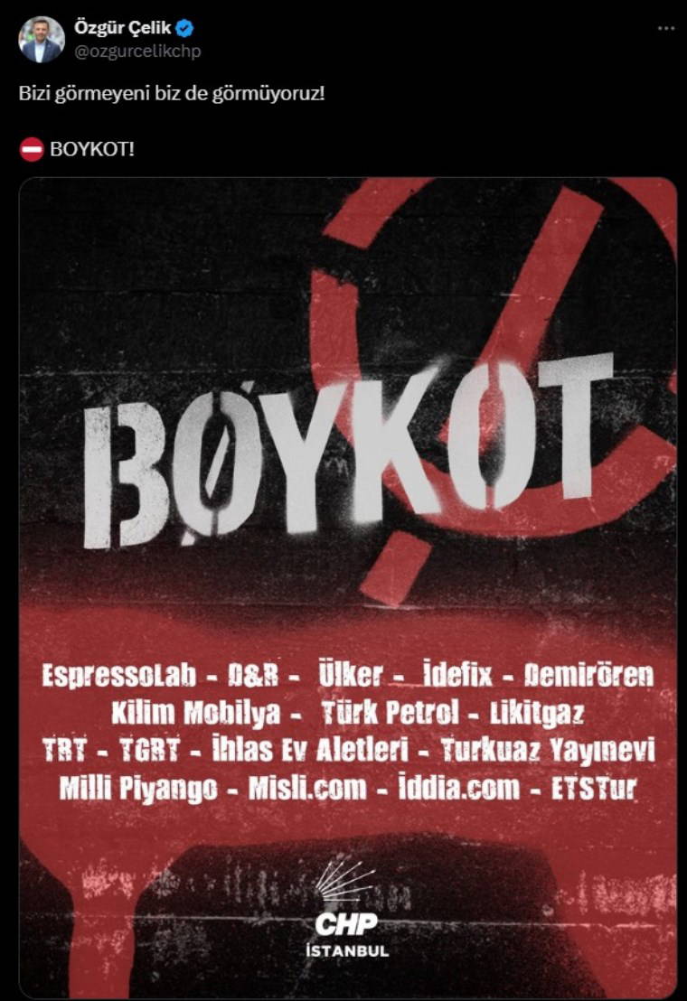 Son olarak CHP İstanbul İl Başkanı Özgür Çelik, güncel boykot listesini paylaştı.