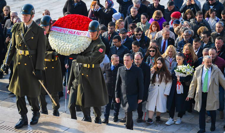 CHP Genel Başkanı Özel ile engellilerden oluşan beraberindeki heyet, Atatürk’ün mozolesine geldi. Mozoleye çelengin bırakılmasının ardından saygı duruşunda bulunuldu.