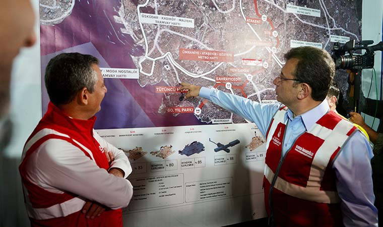 İBB Genel Sekreter Yardımcısı Pelin Alpkökin, Raylı Sistemler Daire Başkanı Ceyhun Avşar ve Raylı Sistem Projeler Müdürü Setenay Uludağ’dan projenin geçirdiği değişimler ve geldiği nokta hakkında bilgiler alan Özel ve İmamoğlu, şantiye alanında açıklamalarda bulundu.