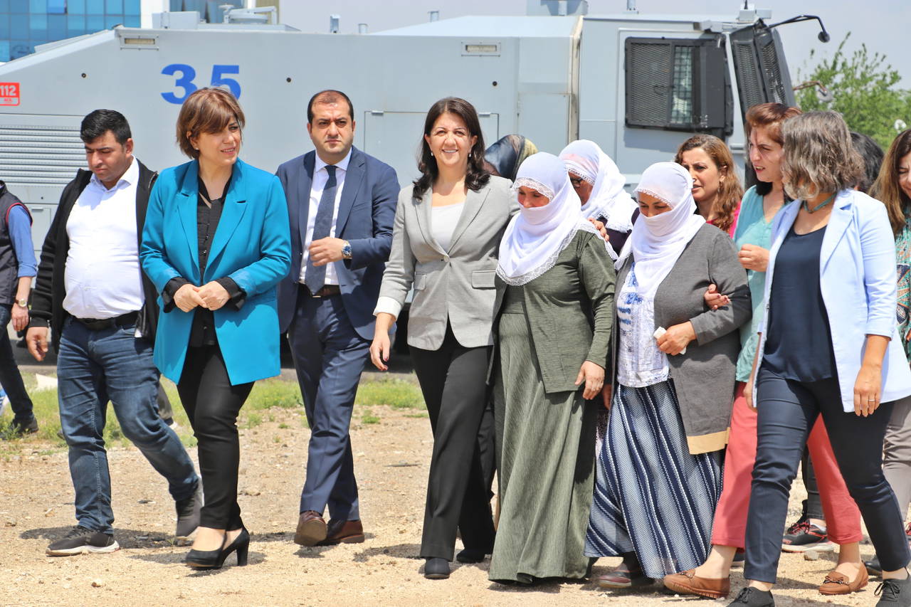 Diyarbakır'a gelen HDP Eş Genel Başkanı Pervin Buldan, hasta tutukluların serbest bırakılması için ailelerin adli tıp önünde başlattığı eyleme katıldı.