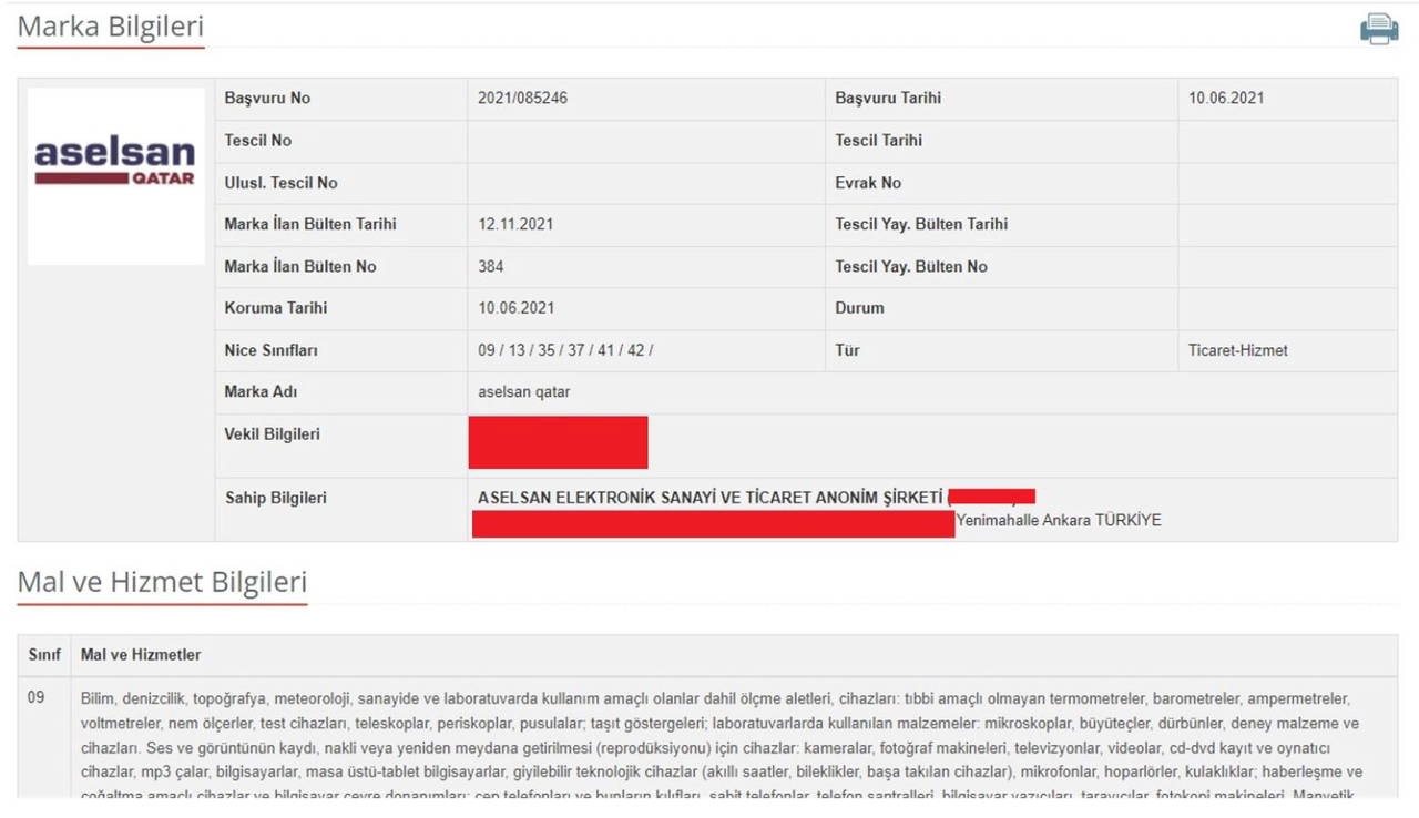 Milli savunma sanayisinin kritik şirketi ASELSAN, Türk Marka ve Patent Kurumu’na başvurarak “aselsan QATAR” markasını tescil ettirdi.