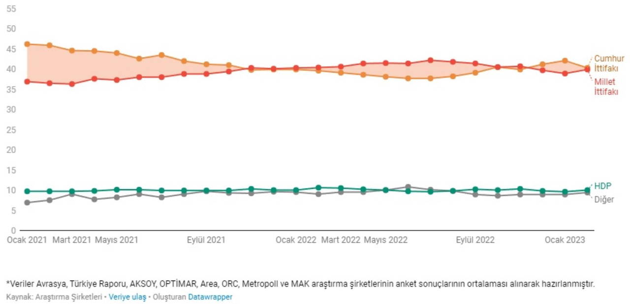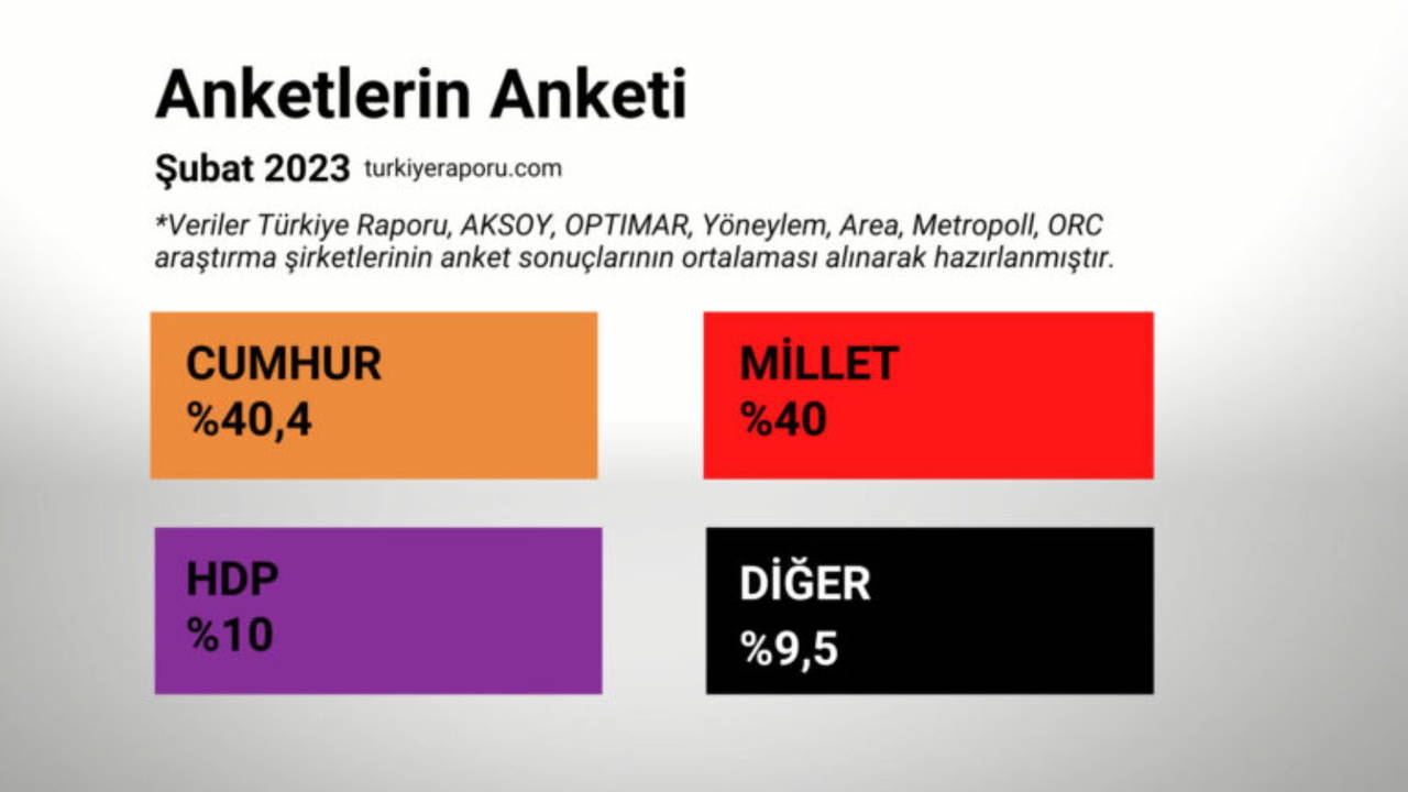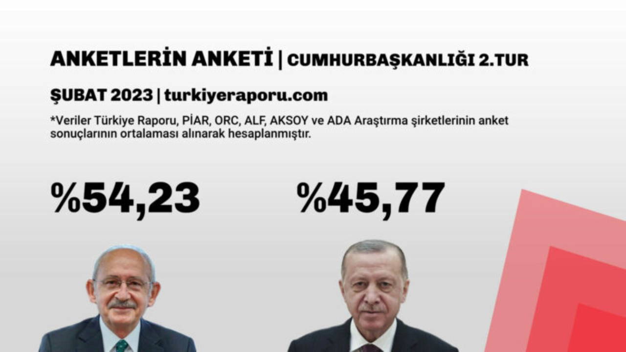 Türkiye Raporu, şubat ayında yayınlanan anketlerin ortalamalarından ittifakların oy oranları ile cumhurbaşkanı adaylarının oy oranlarını hesapladı.