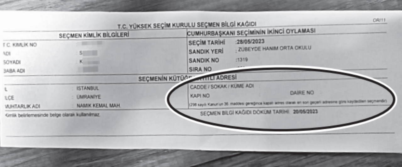 İkinci tura kalan cumhurbaşkanı seçimi öncesi “hayali seçmenler”e ilişkin çeşitli iddialar güncelliğini koruyor. İstanbul’un Ümraniye ilçesi, Namık Kemal Mahallesi’nde bulunan Çener ailesinin yaşadığı üç katlı müstakil eve ikinci tur öncesi fazladan bir seçmen belgesi geldi. S.K. adına gelen belgede ilçe ve mahalle adı yazarken, sokak ve kapı numarası kısmının boş bırakıldığı görüldü.
