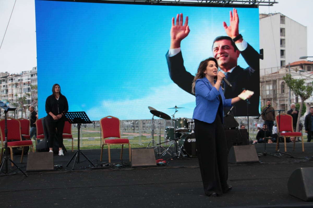 "Hak, hukuk, adalet", "Patates, soğan güle güle Erdoğan", "Faşizme karşı omuz omuza" sloganları atan kalabalığın karşısına çıkan Başak Demirtaş, 14 Mayıs seçimlerinin önemine dikkat çekerek, "Bir oy Yeşil Sol Parti'ye bir oy Kemal Kılıçdaroğlu'na" dedi ve Selahattin Demirtaş’ın ses kaydını paylaştı.