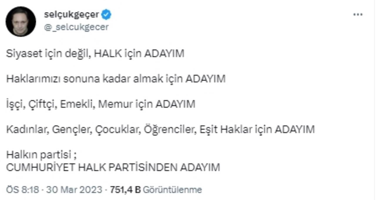 Ünlü ekonomist Selçuk Geçer, 14 Mayıs seçimlerinde Cumhuriyet Halk Partisi’nden milletvekili aday adayı olduğunu duyurdu.