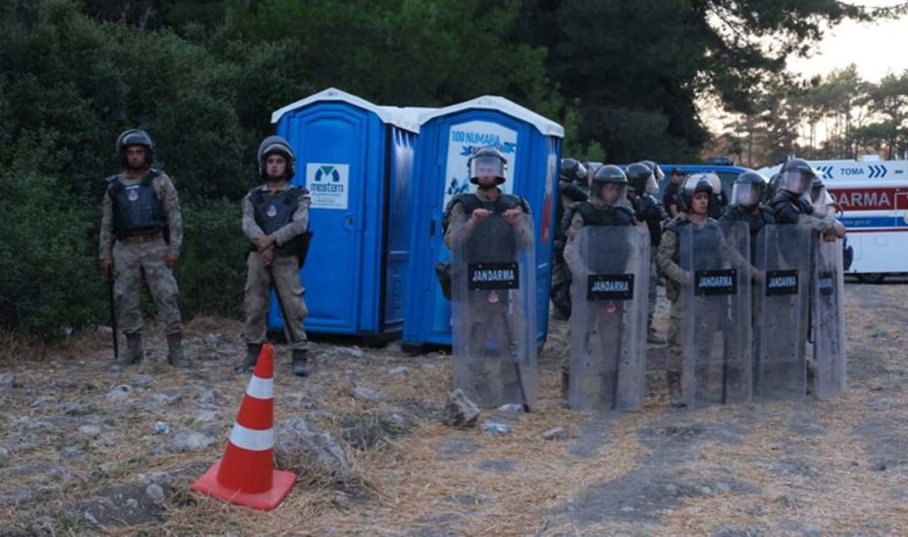 Geçen hafta alana eylemcilerin su tankerini almayan jandarma, son olarak seyyar tuvaletlerin girişini engelledi.