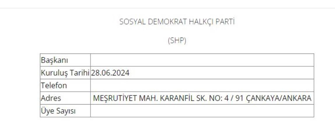 Sosyal Demokrat Halkçı Parti (SHP), 28 Haziran 2024 tarihiyle itibarıyla yeniden kuruldu. Karar, Yargıtay Cumhuriyet Başsavcılığı’nın resmi internet sitesinde yayınlandı.