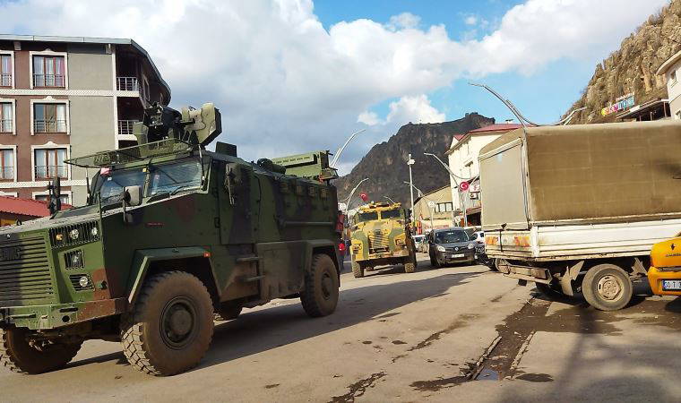 Hakkari yönünden gelen gelen yaklaşık 20 araçlık konvoy, sınırın sıfır noktasına asker ve malzeme sevkiyatı yaptı.