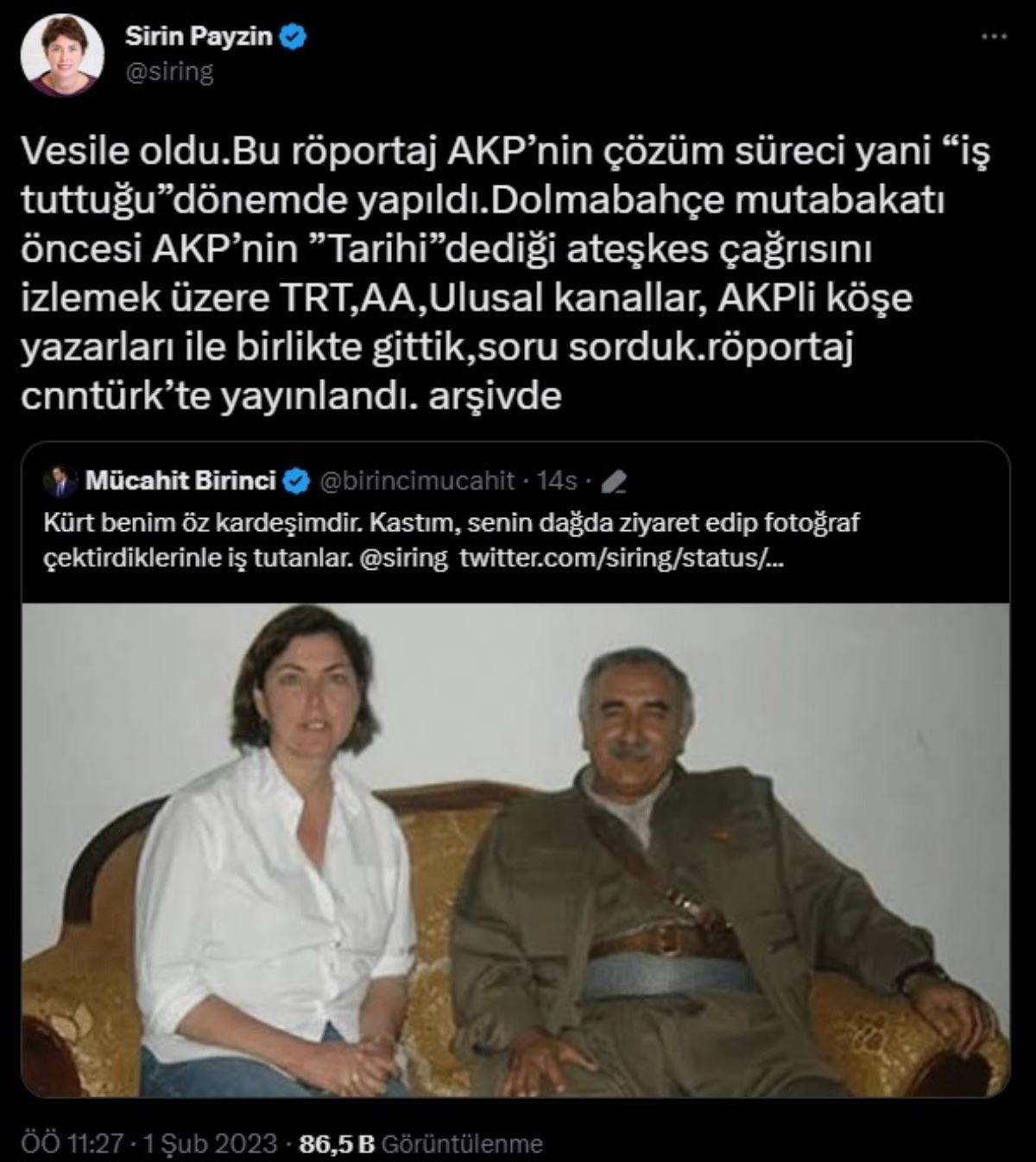 Payzın ise 'Çözüm Süreci'nde PKK'li Murat Karayılan'la çekilmiş bir fotoğrafı paylaşan Birinci'ye şu şekilde karşılık verdi:
