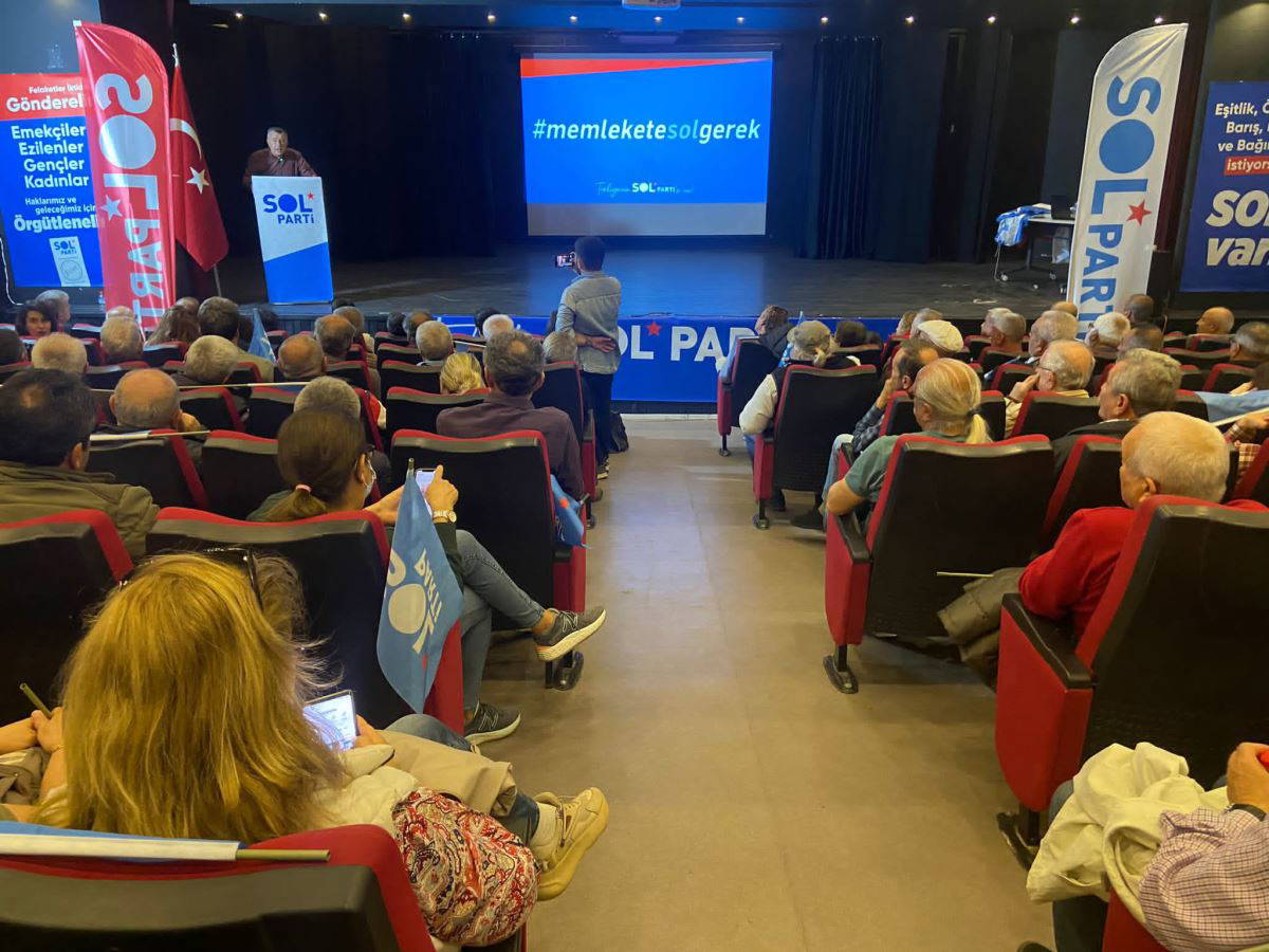 İşleyen, "Bu iktidarı göndereceğiz ama bu tek başına asla yetmeyecek. Emekçiler, ezilenler, gençler ve kadınlar olarak örgütlenerek mücadele etmeden haklarımızı kazanamayız. SOL Parti sağın farklı versiyonlarına geleceğimizi teslim etmeyecek bir irade olarak pusulada olacak. Bazen 'Size gidecek oylar boşa gidecek' diyorlar. Yıllarca böyle söylendi, oylar diğer partilere yönlendirildi ve sağcılık büyütüldü sonunda ülke bu haramilere teslim edildi. SOL'a güç verin laiklik, bağımsızlık ve eşitlik mücadelesi büyüsün. Meclis'ten NATO'nun genişleme kararı çıktı ve tek bir hayır oyu yoktu. İktidarda yerli ve milli olduğunu iddia edenler var ama Türkiye'de ABD ve NATO tesisinin sayısı 60. İncirlik'te nükleer silahlar var, ekonomi yabancı sermayeye bağlı, topraklarımız emperyalist tekellerin hakimiyetinde. Deniz Gezmiş mahkeme savunmasında, '35 milyon metrekare toprağı işgal altında' demişti. İşgal sürüyor. Eğer NATO'dan çıkılsın, üsler kapansın, ikili anlaşmalar iptal edilsin, Türkiye bağımsız olsun istiyorsanız oyunuzu SOL Parti'ye atın. Kalbinizin sesini dinleyin, inandığınız değerlere, inandığınız partiye oy verin" diye konuştu.