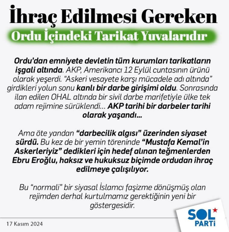 SOL Parti, iktidarın ‘ihraç’ hamlesine yayımladıkları bildiri ile yanıt verdi.