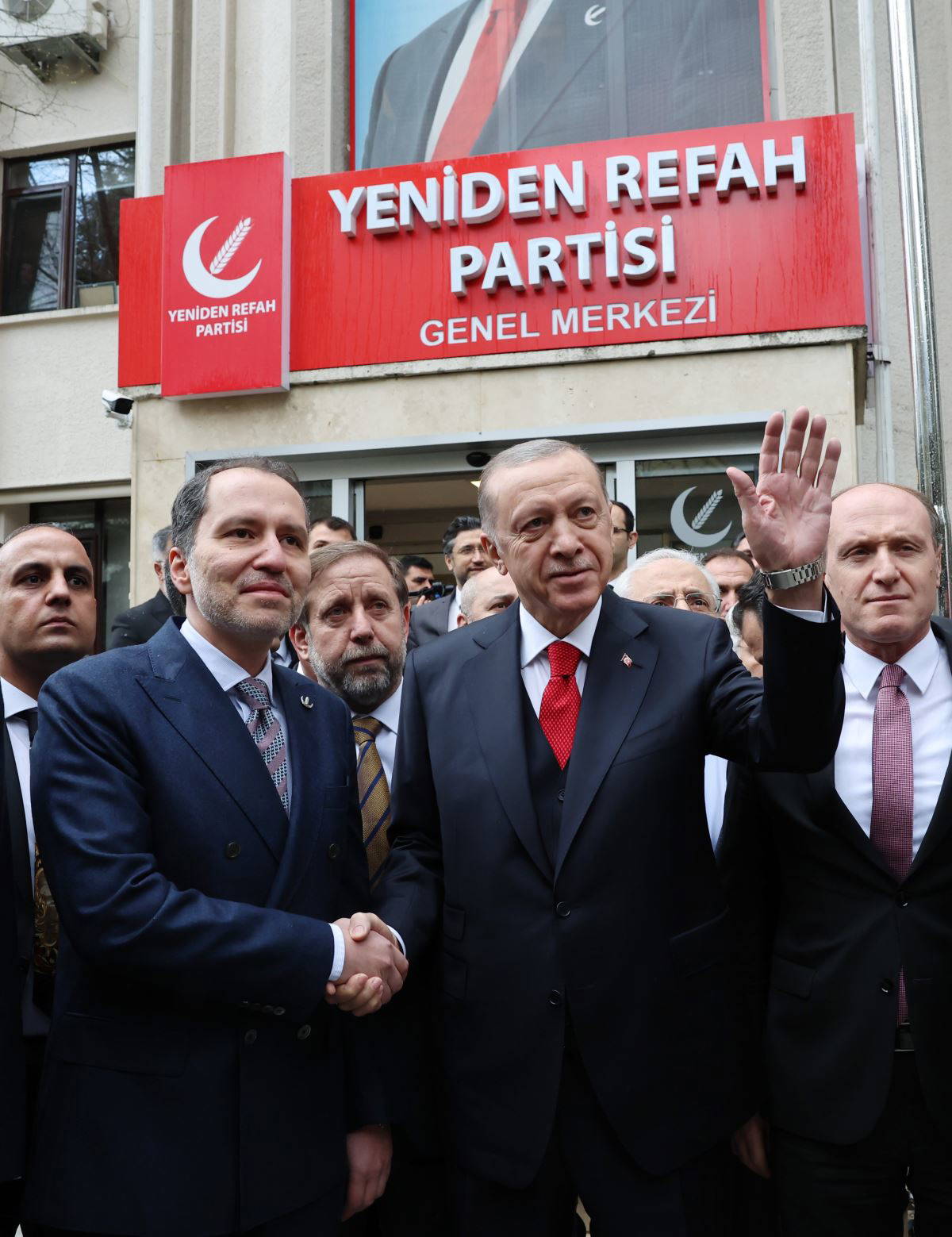AKP'li Cumhurbaşkanı Recep Tayyip Erdoğan, Cumhur İttifakı'na katılan son parti olan Yeniden Refah Partisi'ni ziyaret etti. Erdoğan, burada Fatih Erbakan ile bir araya geldi.