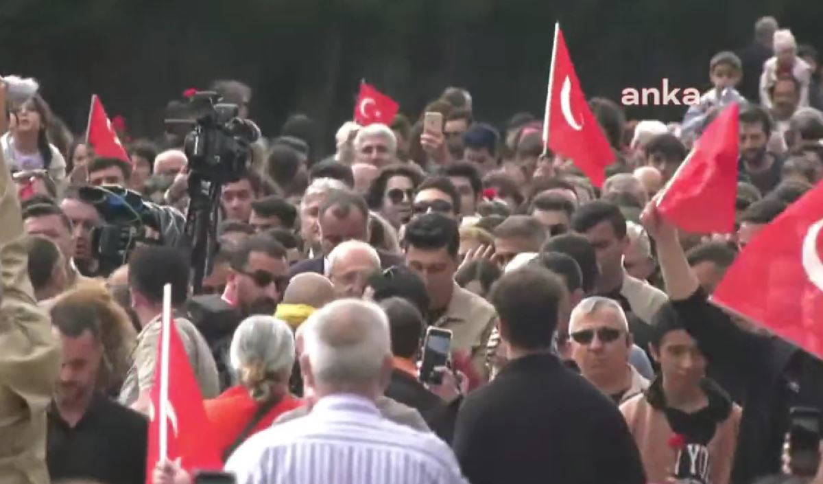 Anıtkabir'i ziyaret ederken Kemal Kılıçdaroğlu ile karşılaşan yurttaşlar İzmir Marşı'nı söyledi.