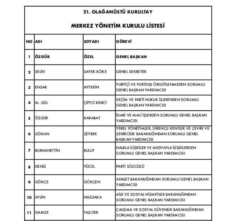 İşte CHP'nin yeni MYK listesi…